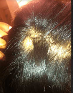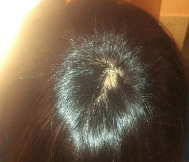 Three years later in 2012, I noticed pea-sized patches on the top of my head while styling my hair. This discovery bothered me; I took a picture and promptly called a local dermatologist.