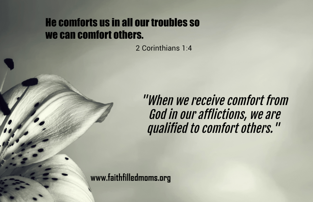 Although we are tempted to believe the opposite, suffering does good work in us as God used the Holy Spirit in us to extend the comfort we receive from God to others. The first place I had the privilege of comforting others was in my home when my kids struggled with the same things I had struggled with. I have seen the beautiful multiplying effect as God has used my suffering to grow me, then grow the hearts of my children, who now have extended the comfort they received from God to others. God uses our physical hardships, so that there is purpose in our pain.