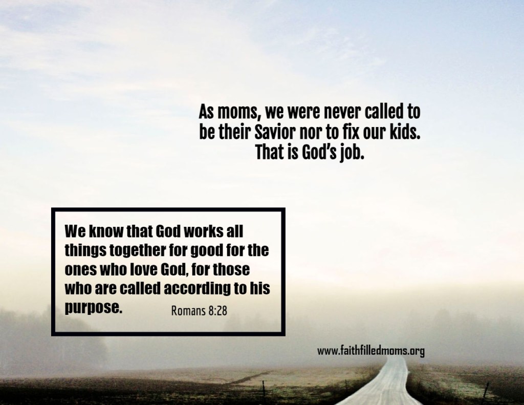 - I am NOT my child’s god. As moms, we were never called to be their Savior nor to fix our kids. That is God’s job. When they are little, we do so much for them, and our Creator designed for us to come alongside them, teach and admonish them, and pour His truth into them. But we must adjust as they grow older.