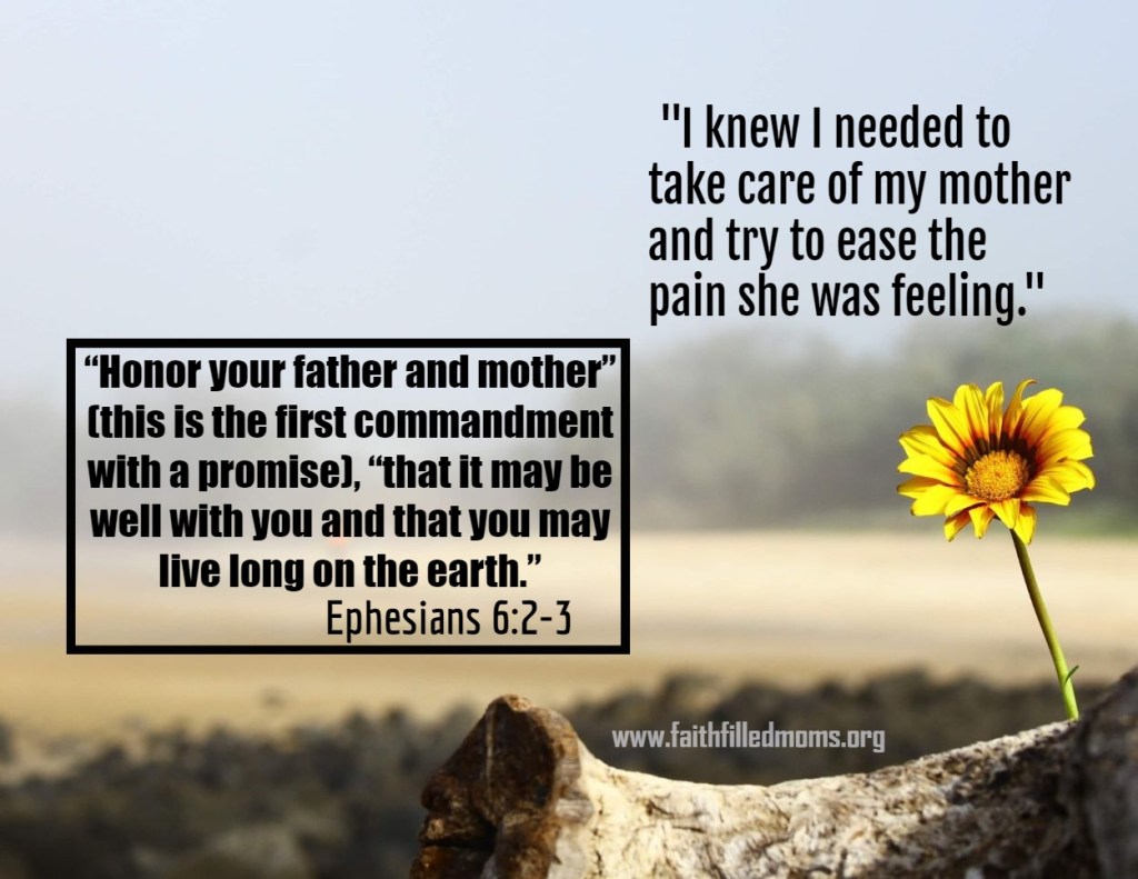 Whenever dealing with her got to be too much, I would sit in my car, close my eyes, and pray. I prayed until I felt I could face her. Looking back, I realize God was ordering my steps. Ephesians 6:2-3 says: